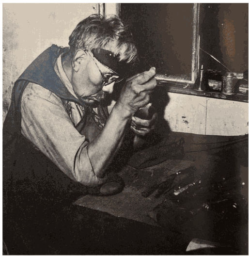 Born at Chaatl, John Cross (1867-1939) was an Eagle Chief from Skidegate. He was trained as a tattooist back in the 1870s and was thus skilled as an artist in both two and three dimensions. One of the best argillite carvers of his generation and a highly proficient metal jeweller, he did not, however, pursue his art full-time. Marius Barbeau, who interviewed the artist and wrote about him at some length, noted that Cross greatly enjoyed fishing and boatbuilding as well. [3]